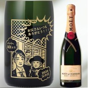 【名前 似顔絵を彫刻できるボトル】イラスト彫刻ボトル(コミックンデザイン) シャンパン MOET&CHANDON BRUT 誕生日プレゼント オリジナル サプライズ 世界に一つ | gift2bless